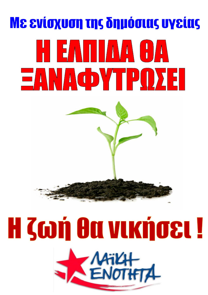 Η σημερινή υγειονομική κρίση είναι καμπανάκι προείδοποίησης για την ενίσχυση των υπηρεσιών υγείας. Η πρόσληψη προσωπικού για τα νοσοκομεία είναι κάτι που πρέπει να διεκδικήσουμε σθεναρά ως πολίτες. Για να ξαναφυτρώσει η ελπίδα. Για να νικήσει η ζωή.